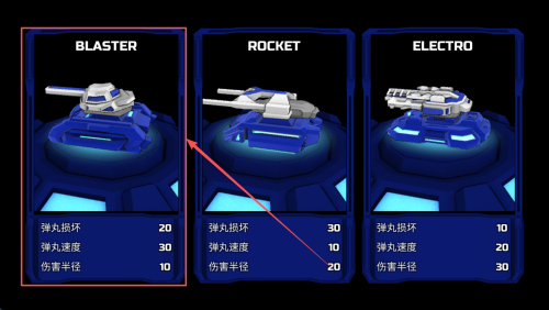 2、如何选择坦克:在武器选择界面,根据弹丸损坏、弹丸速度和伤害半径等参数,选择适合你的坦克类型。