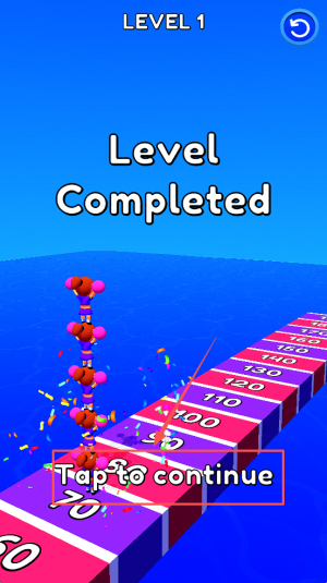 4、最后,关卡完成后,点击“Tap to continue”按钮继续游戏。