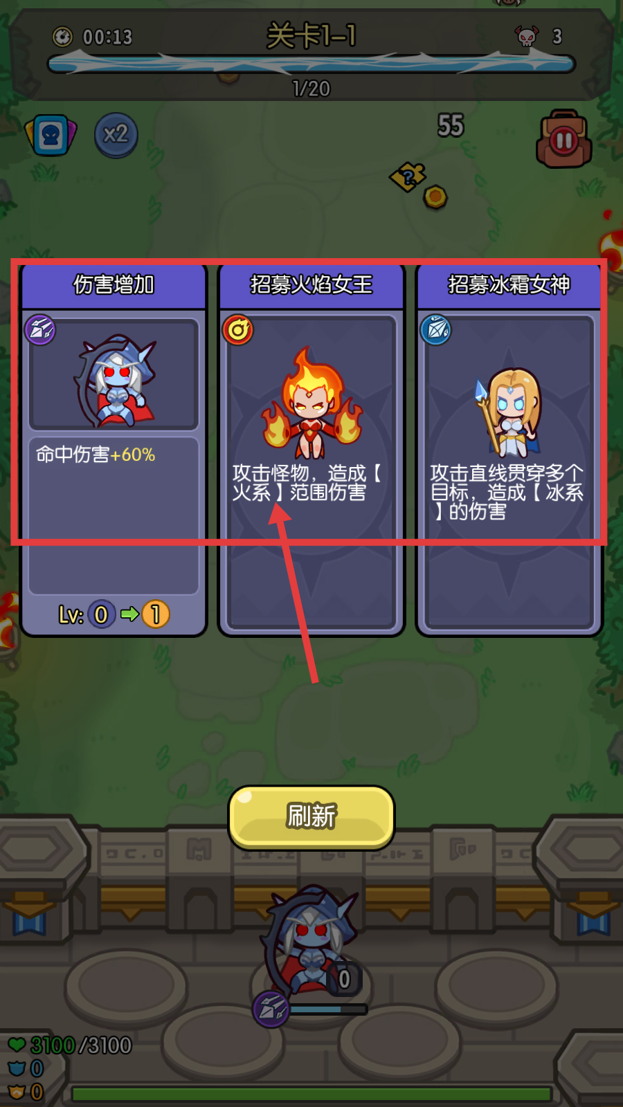 3、战斗中选择【招募火焰女王】,利用其【火系】范围伤害,提升打怪效率。