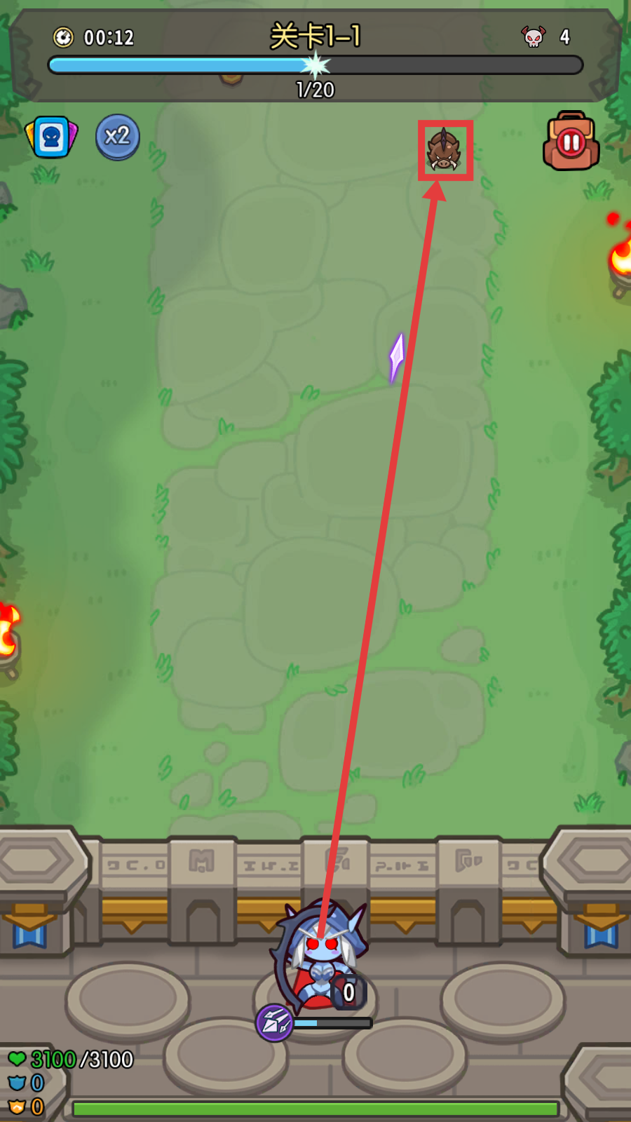 2、在【关卡1-1】战斗中,瞄准野猪怪物攻击,逐步推进关卡进度。