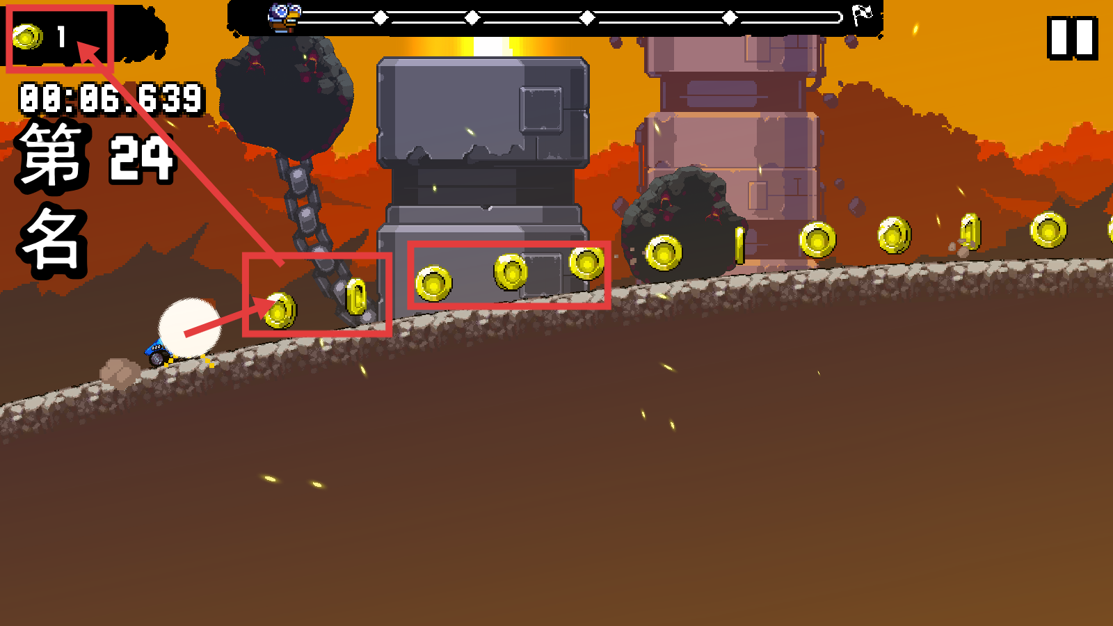2、在赛道上尽可能收集金币,金币可用于升级和解锁功能,积累【金币-数量】是提升实力的关键。