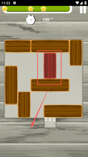 1、开启解谜准备:进入游戏明确 “取出红色木块通关” 目标,熟悉木块拖拽操作,观察当前关卡木块布局(数量、位置、可移动方向)。