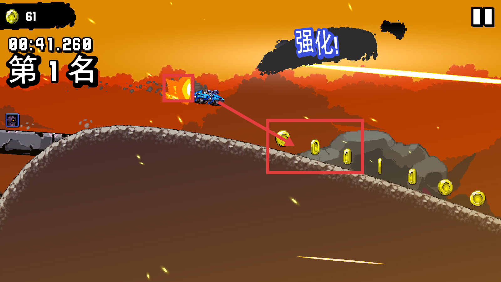 3、保持【第1名】优势,收集赛道上的金币,触发【强化】效果,增强赛车性能助力夺冠。