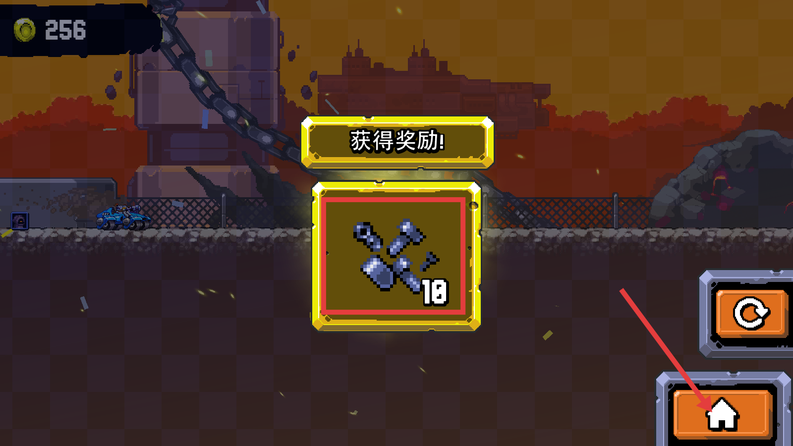 4、获得奖励【零件-10】后,点击主页按钮返回,可用于升级赛车或解锁新内容,持续提升实力。
