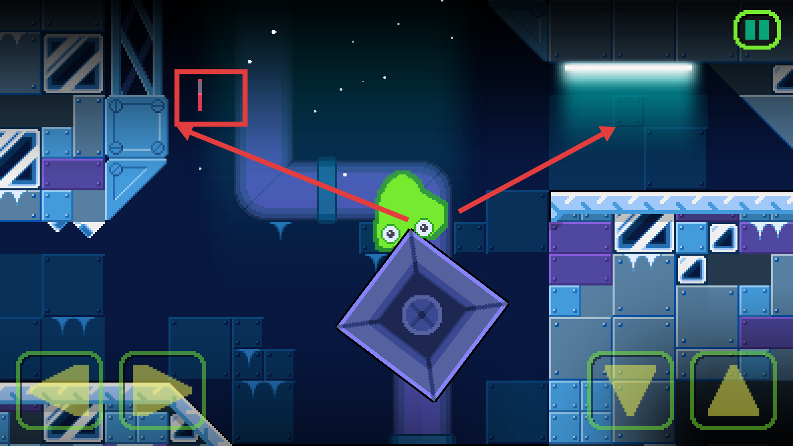 2、操控史莱姆在平台上移动,借助移动按钮规划路线,探索关卡内的机关区域,推进进程。