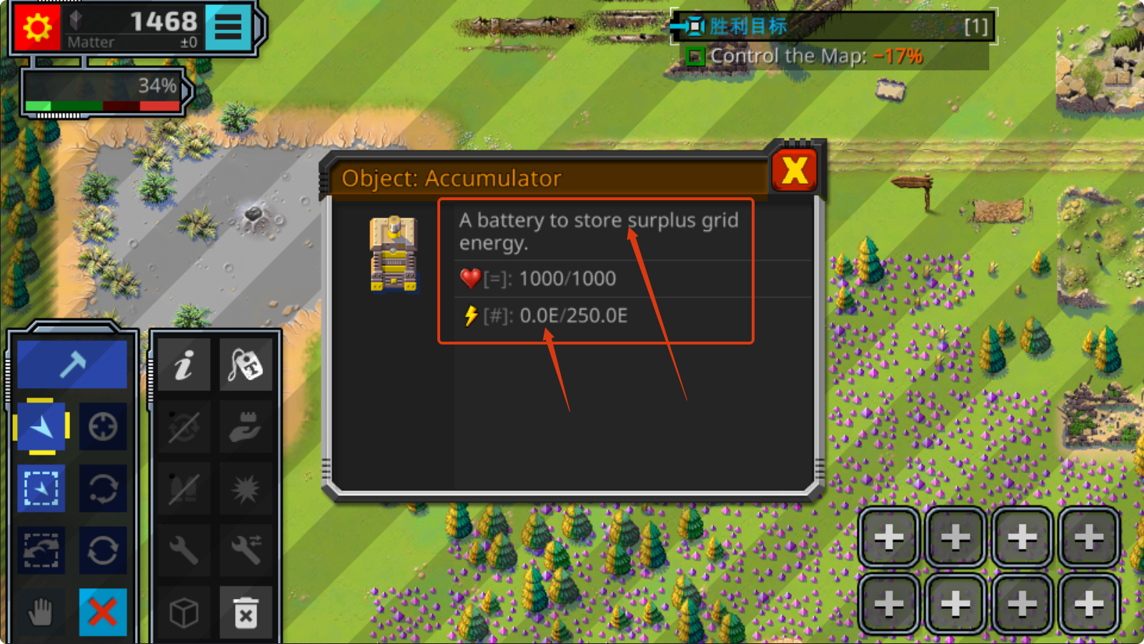 4、遇到【Accumulator】建筑时,可查看其信息,它是存储电网surplus能量的电池,能了解其生命值与能量存储情况,助力资源管理。