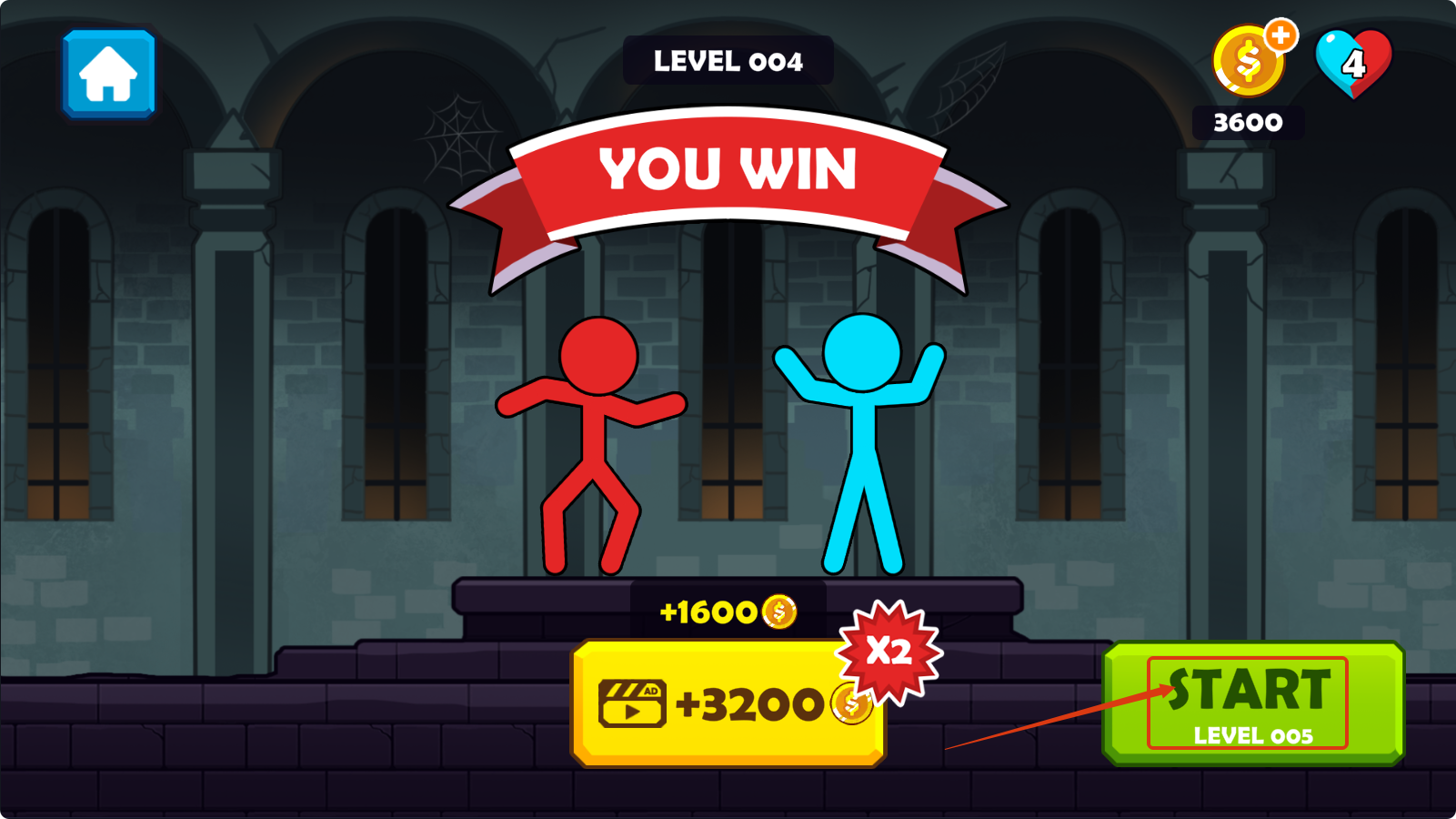 4、完成LEVEL-004后,点击【START-LEVEL-005】按钮,开启下一关,继续挑战获取更多奖励。