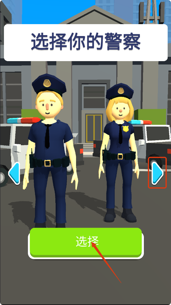 1、进入游戏后,选择心仪的警察角色,点击【选择】按钮,开启警察执勤的游戏旅程。
