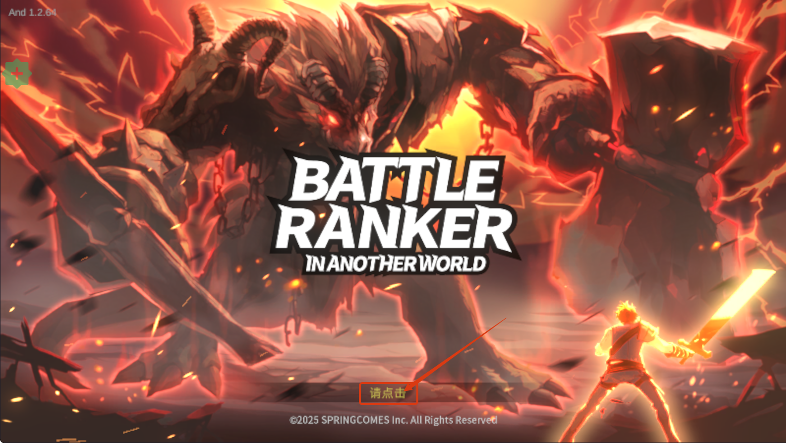 1、进入【Battle-Ranker-In-Another-World】游戏,点击【请点击】区域,开启异世界战斗之旅。