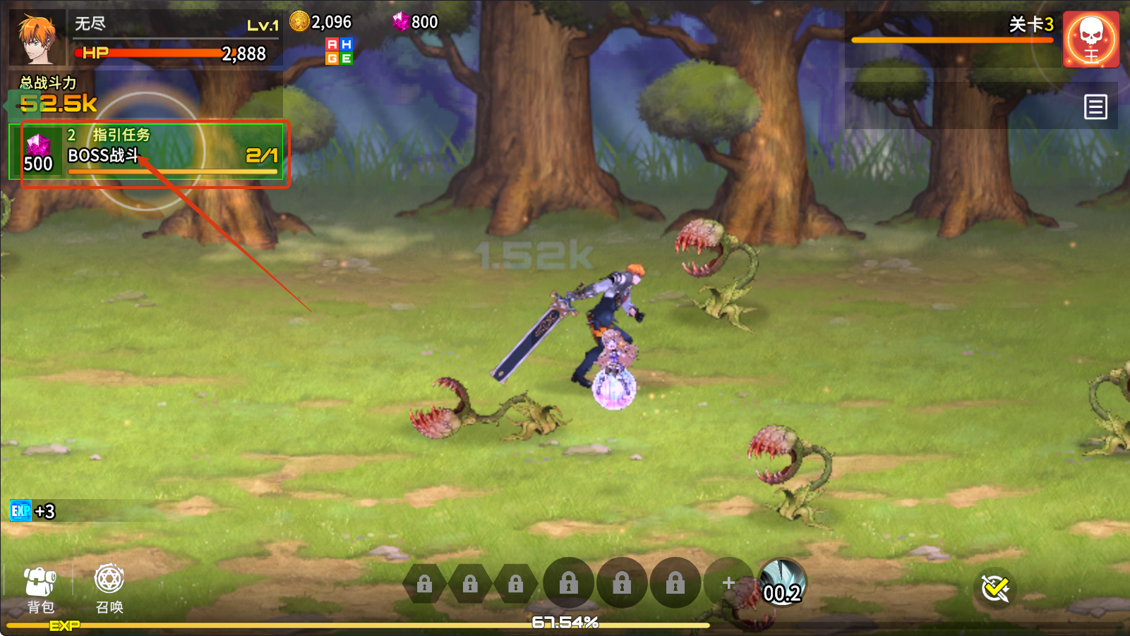 4、在关卡3,完成【指引任务-BOSS战斗-2/1】,推进任务获取奖励,提升战力继续冒险。