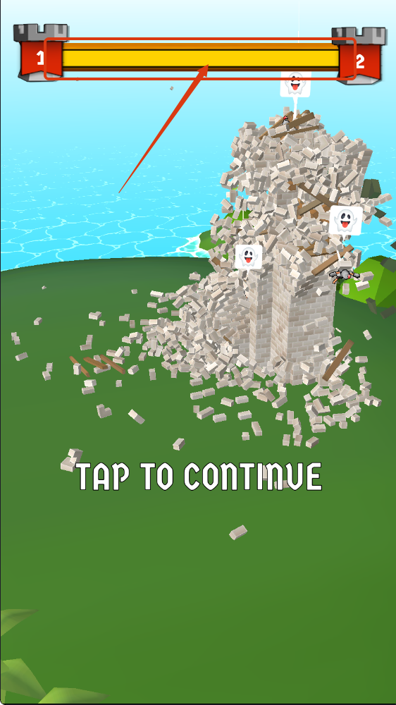 3、城堡被摧毁后,点击【TAP-TO-CONTINUE】,推进游戏进程进入结算界面。