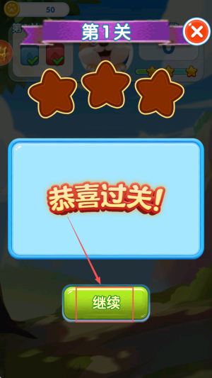 4、最后,听到“恭喜过关”后,点击“继续”进入下一关。