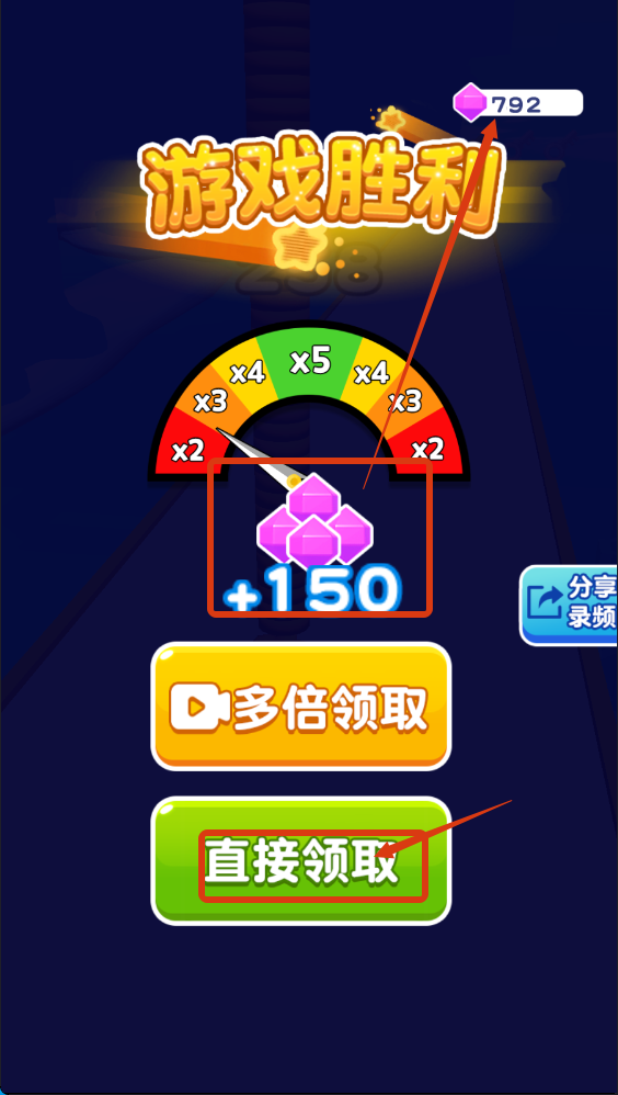 3、通关后点击【直接领取】可获取【+150-钻石】奖励,也可选择多倍领取来积累更多资源,用于后续解锁内容。
