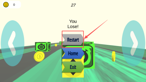 4、最后,如果游戏结束,你可以选择“Restart”重新开始当前关卡或“Home”返回主菜单。