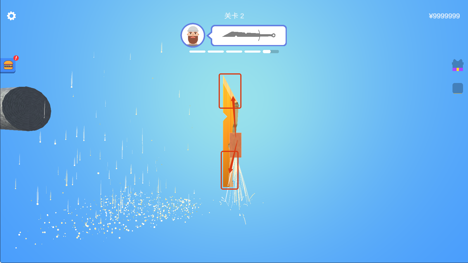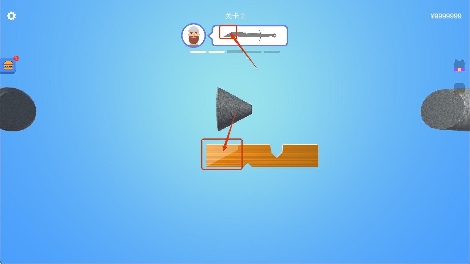 1、关卡2开始,根据上方剑的轮廓,使用砂轮对木材进行初步打磨,塑造剑的基本形状,为后续精细加工铺垫。