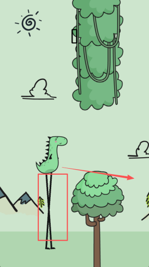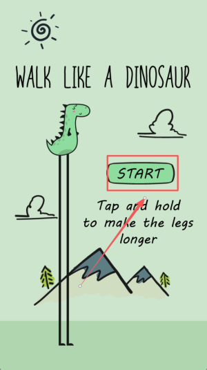 2、接着,通过点击并按住屏幕来使恐龙的腿变长,帮助它越过障碍。