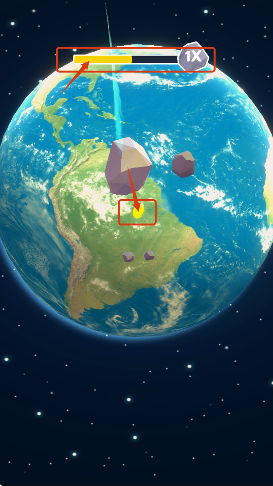 2、操控流星撞击地球,关注上方进度条,精准控制撞击点,积累撞击进度,触发更丰富的场景互动。