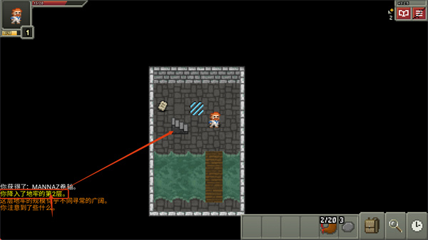 1、获得【MANNAZ卷轴】后降入地牢第2层,此层规模广阔,需仔细探索,留意新区域与资源。