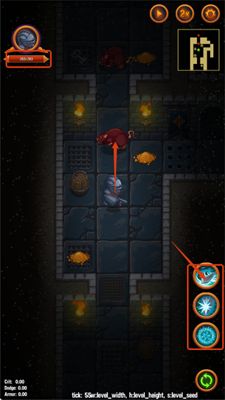 3、探索地牢时留意金币堆,及时收集资源,为后续强化角色积累财富。
