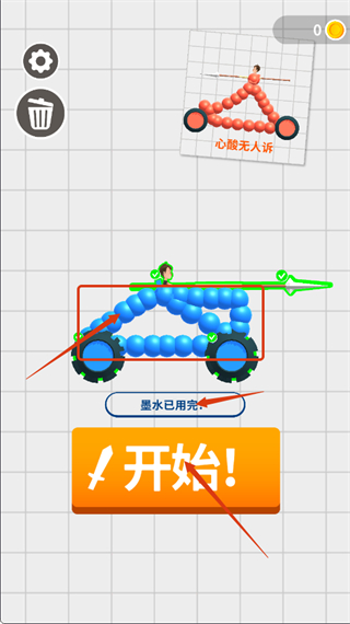2、组装完成后,尽管【墨水已用完】,仍点击【开始!】按钮,开启对战环节。