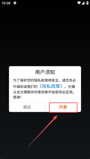 1、首先,阅读用户须知并点击“同意”按钮以接受隐私政策。