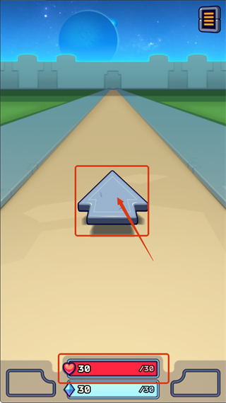 1、点击向上箭头前进,关注【生命值-30/30】,开启冒险进程,探索游戏场景。