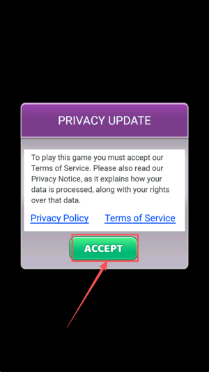 1、首先,阅读并同意隐私政策和使用条款,点击“接受”按钮以进入游戏。