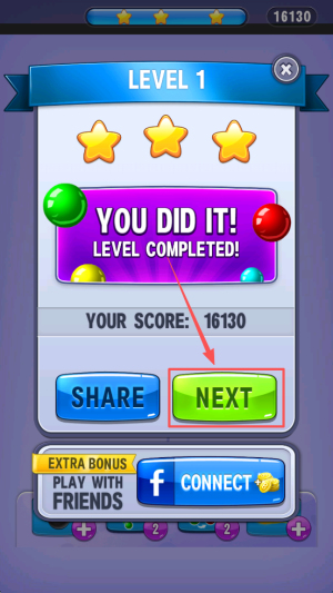 4、最后,完成关卡后,点击“NEXT”按钮继续下一关,或点击“分享”按钮分享你的成绩。