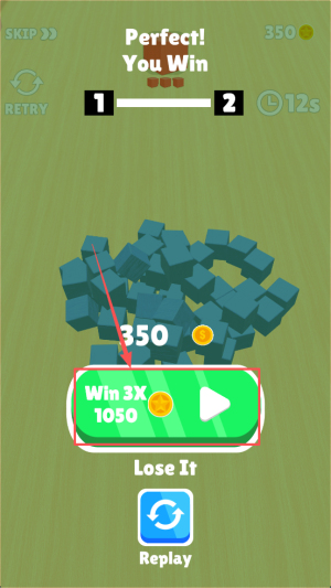 4、最后,完成关卡后,点击“Replay”按钮重新开始本关或点击“Win 3X”按钮领取奖励。