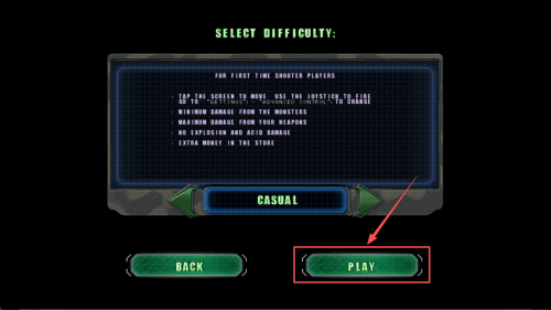 3、如何选择难度:在难度选择界面,选择“CASUAL”或其他难度,然后点击“PLAY”按钮开始游戏。