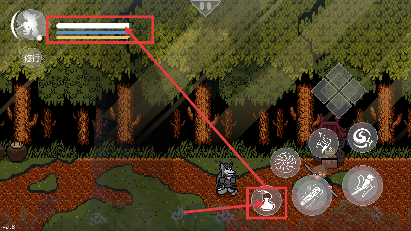 3、战斗中留意血量条,及时使用葫芦恢复生命值,保持良好状态以应对敌人。