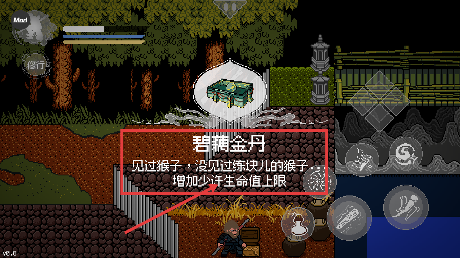 4、获得【碧藕金丹】,使用后增加少许生命值上限,提升角色生存能力。