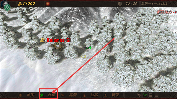 2、进入游戏后,点击【队伍】,查看角色状态,关注士气和部队体力情况。