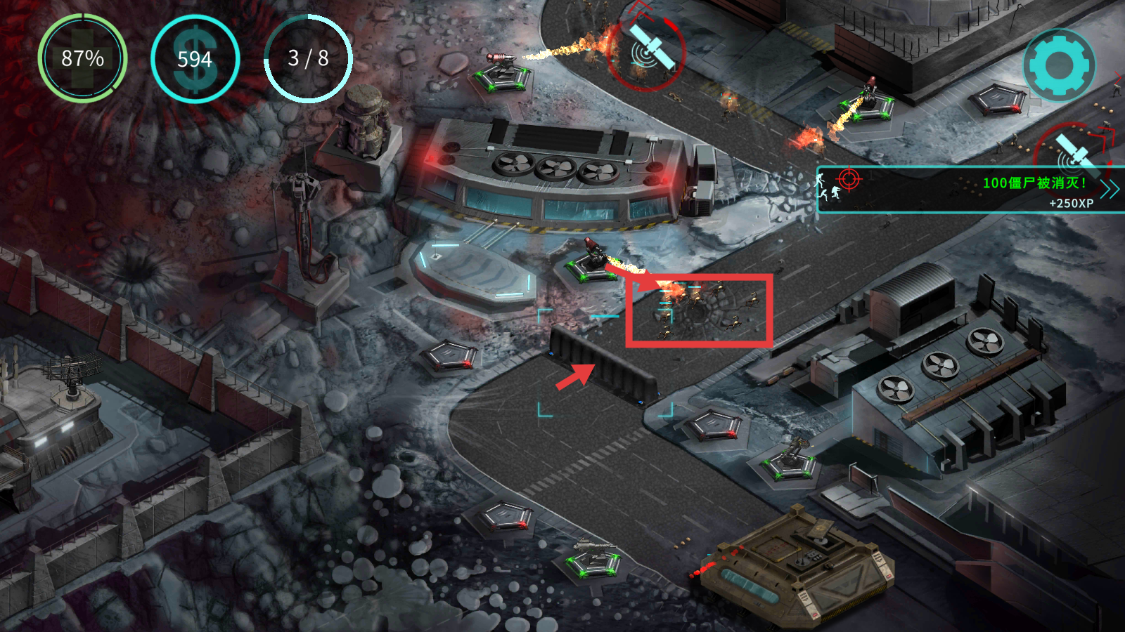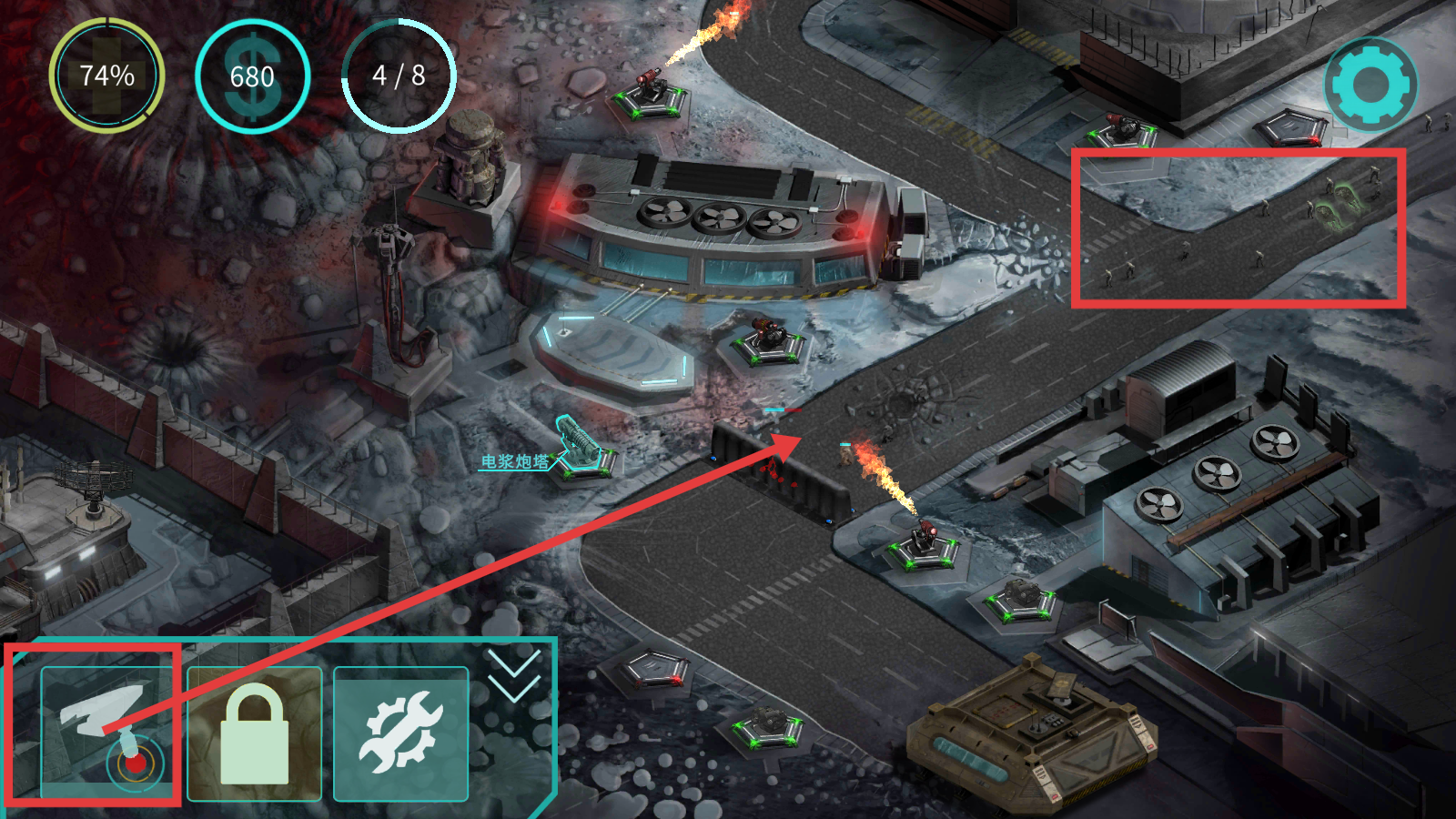 3、部署电浆炮塔等建筑,结合特殊武器,推进击杀进度【4/8】,增强阵地防御能力。