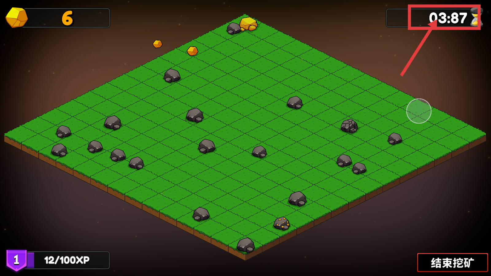 3、留意右上角时间(如【03:87】),在限时内高效挖矿,增加矿石收集量。