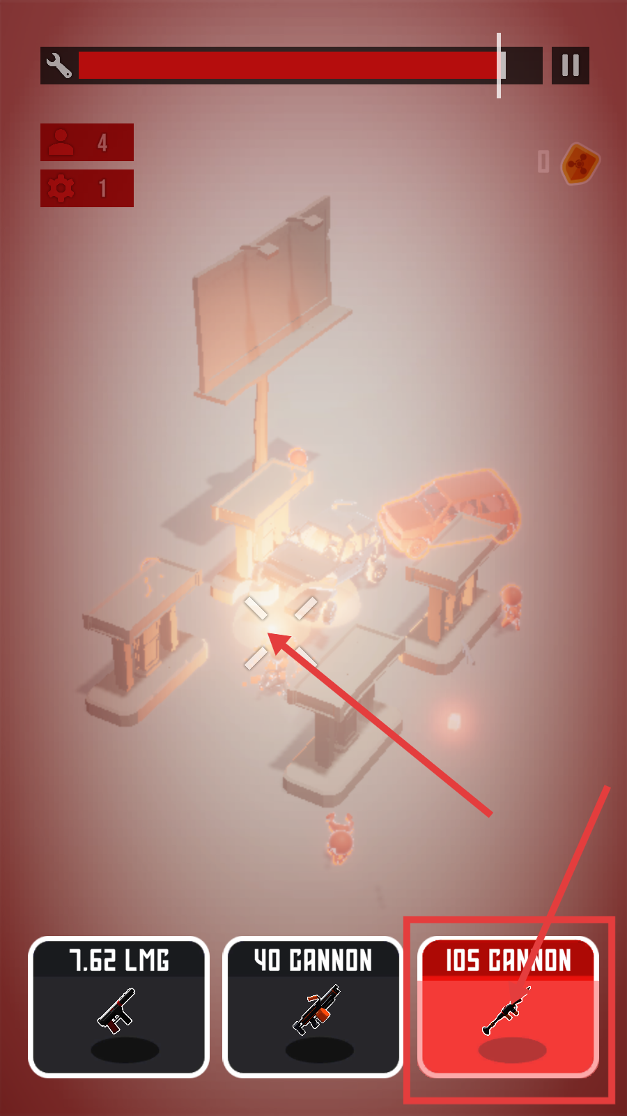 2、战斗时选用【IOS-CANNON】,瞄准红框标记的目标射击,利用武器优势消灭敌人,推进游戏进程。