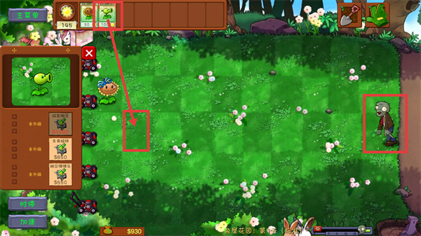 4、开局选择关卡后进入阵容配置界面,根据僵尸弱点搭配植物类型。阳光积累速度影响部署节奏,需优先种植生产型单位建立经济基础。