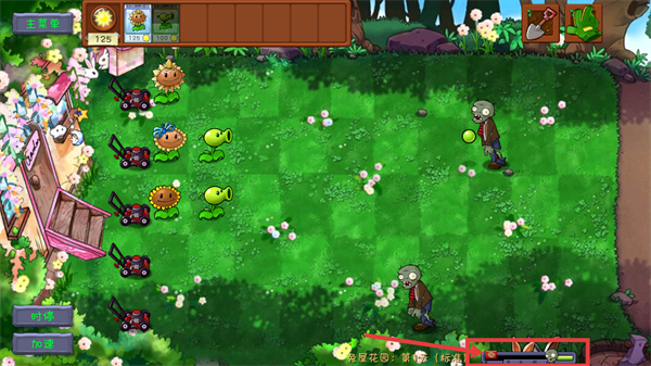 4、关注关卡进度条,合理布局多种植物,如向日葵和豌豆射手,协同作战以顺利通过“兔屋花园-第1天”关卡。