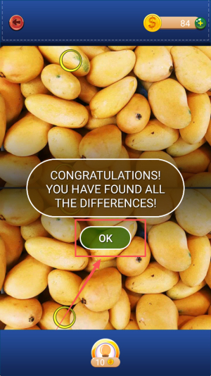 4、最后,当所有不同之处都被找到后,点击“OK”按钮并解锁新关卡继续游戏。