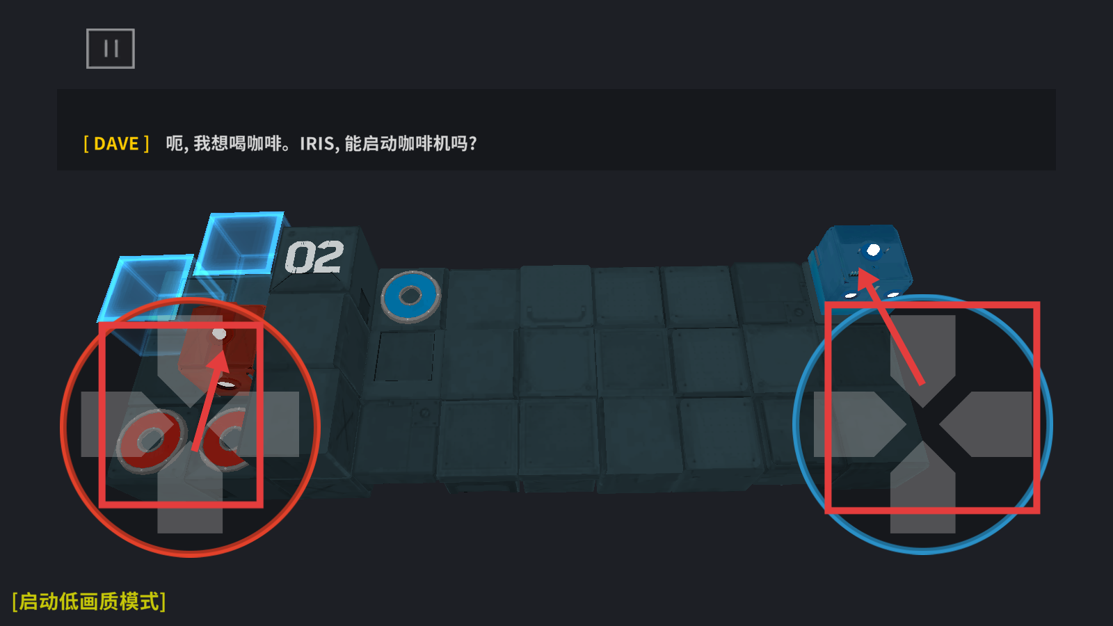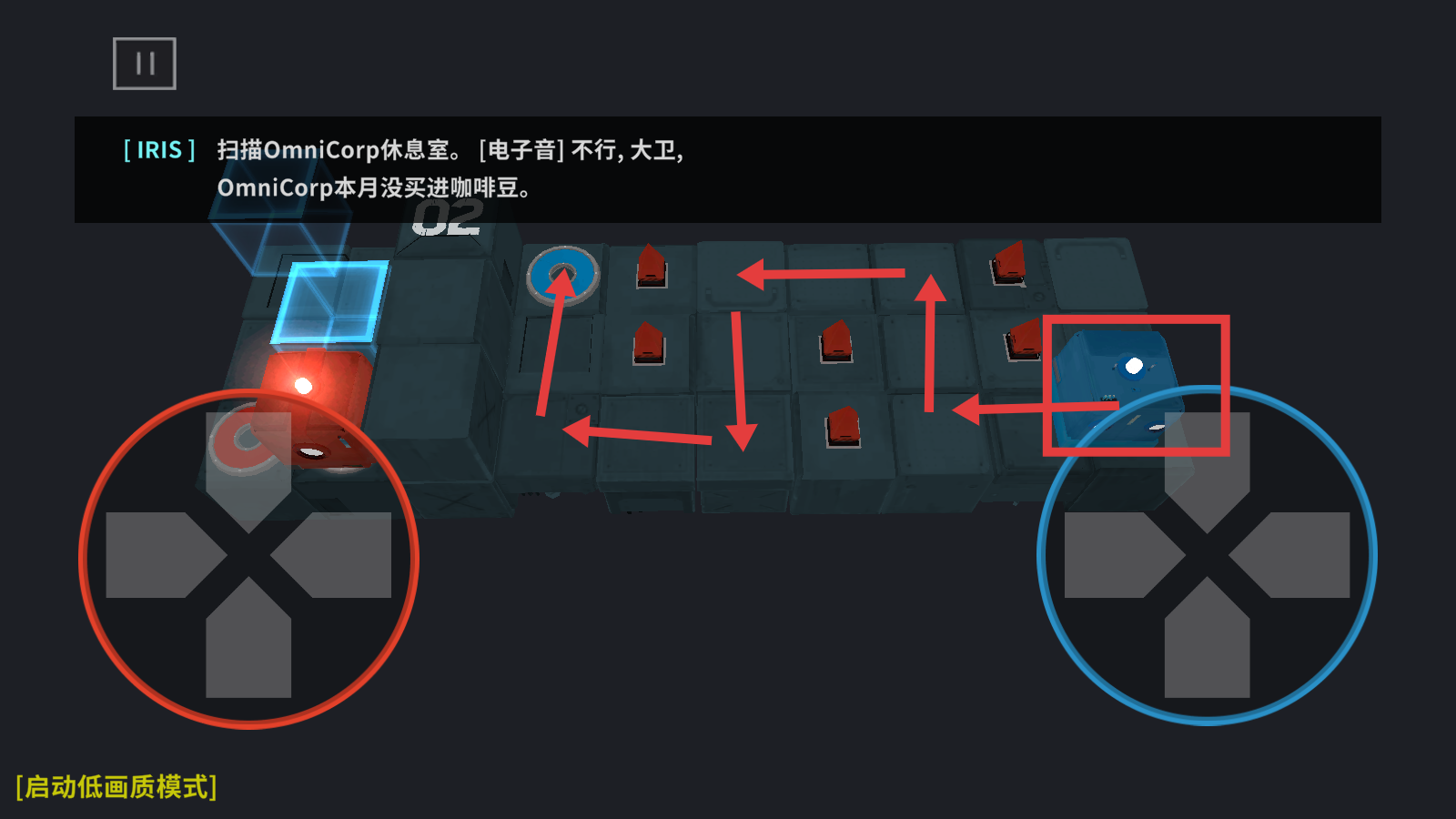 3、操控蓝色角色按路径移动,与场景中的元素互动,完成关卡内的任务要求。