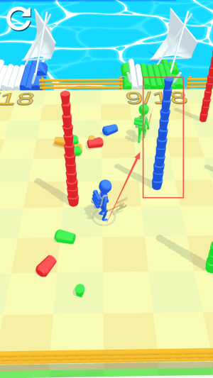 1、开启对战准备:进入游戏后选择橡皮人颜色与模式,明确 “收集木材、建造木筏、夺取冠军” 目标,熟悉操控与建造逻辑。