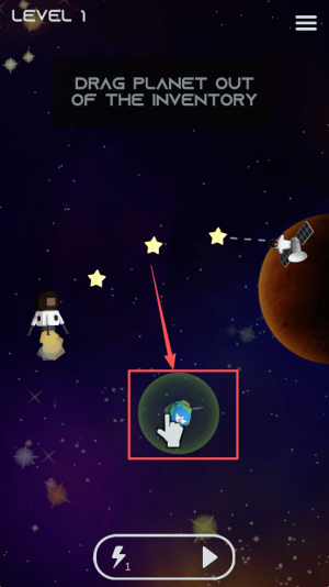2、按住星球图标,从道具栏“DRAG PLANET OUT”拖到太空。