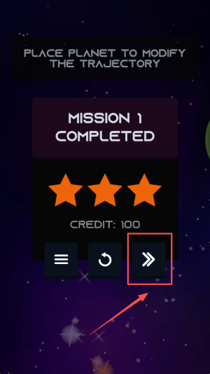4、星球放置正确后显示“MISSION 1 COMPLETED”,领取积分继续下一关。