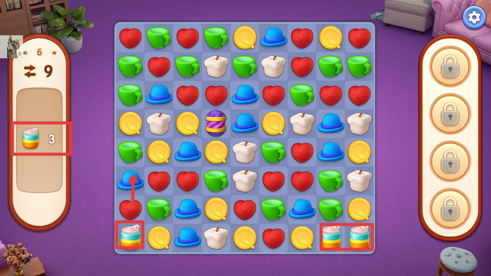 3、剩余【彩色罐子-3】时,精准匹配消除,完成收集目标。