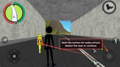 4、如何进行近战攻击:按住屏幕右侧的攻击按钮,对敌人发起近战攻击并击败对手。