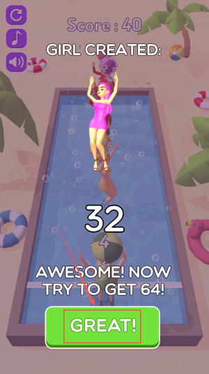 2、移动匹配合并:滑动屏幕操控美少女移动,让举相同数字球的美少女相遇,自动合成新的美少女与更高数字。