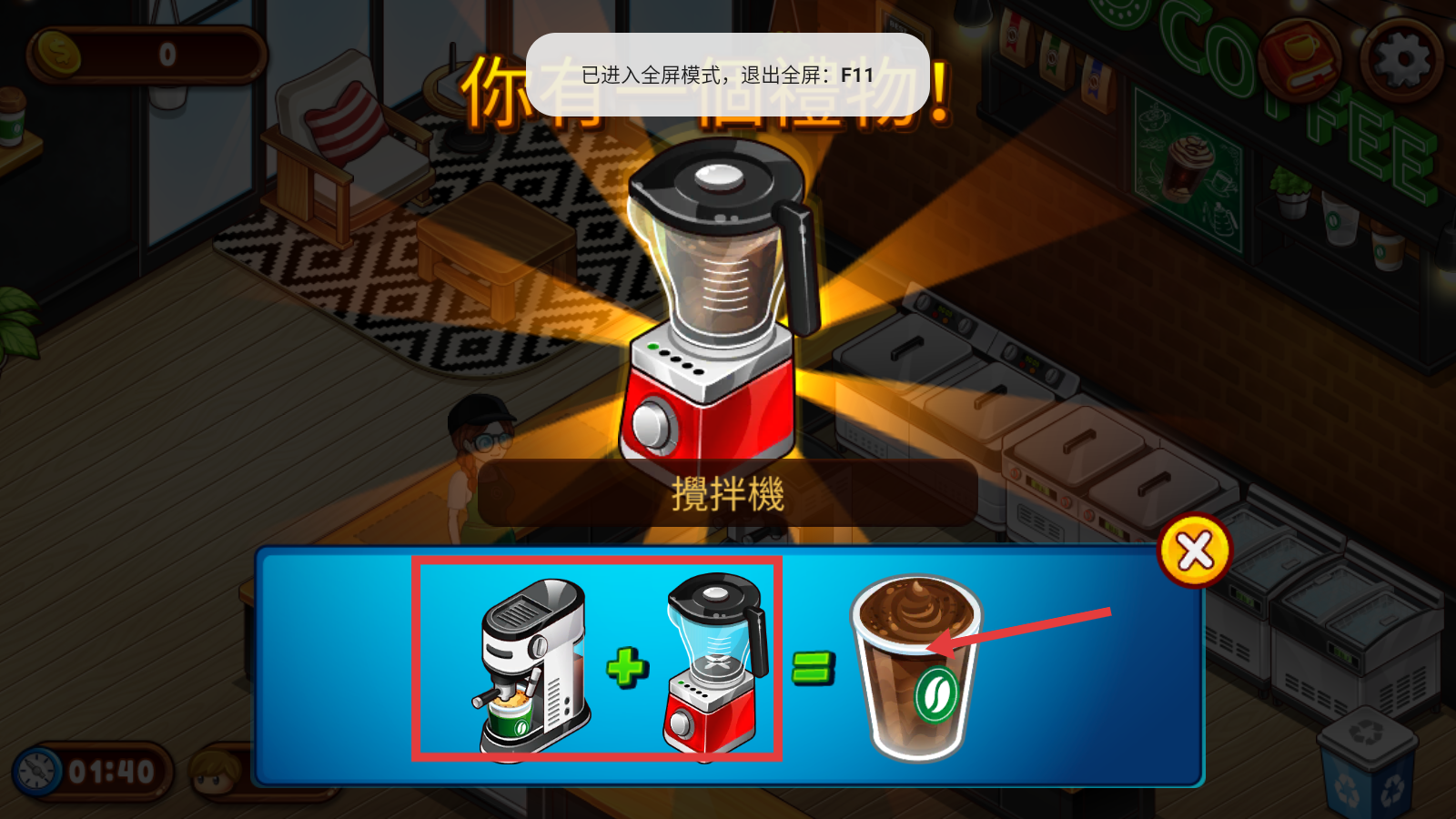 2、获得新道具【攪拌機】,将其与咖啡机组合可制作特色咖啡,提升顾客满意度与店铺收益。