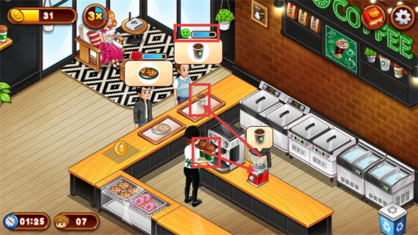 4、通过完成每日任务和特殊订单获取稀有资源,用于解锁高级装饰和厨具,打造独具特色的主题咖啡厅。
