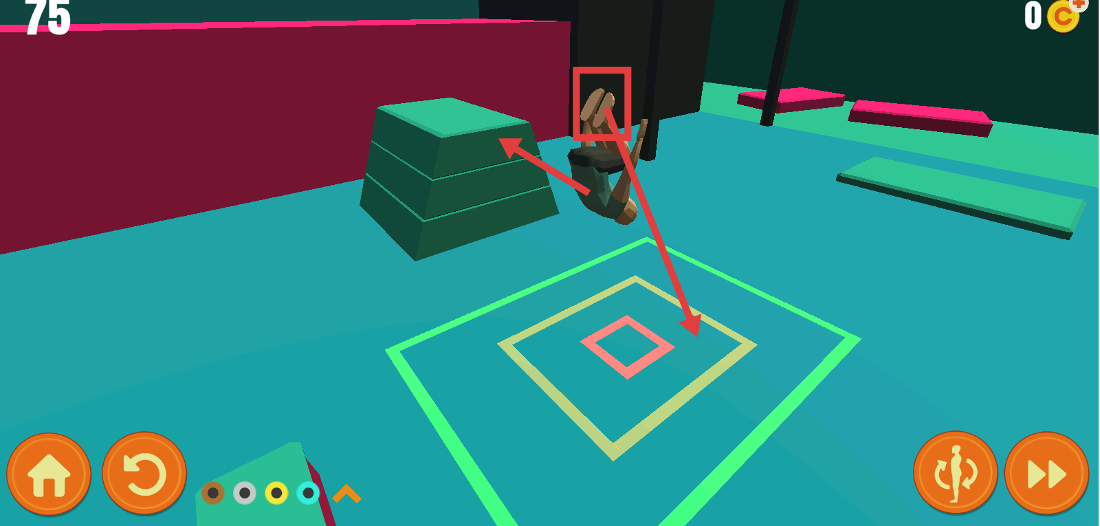 2、在场景中,找到粉色区域,准备在此处触发翻转动作,开启特技表演。