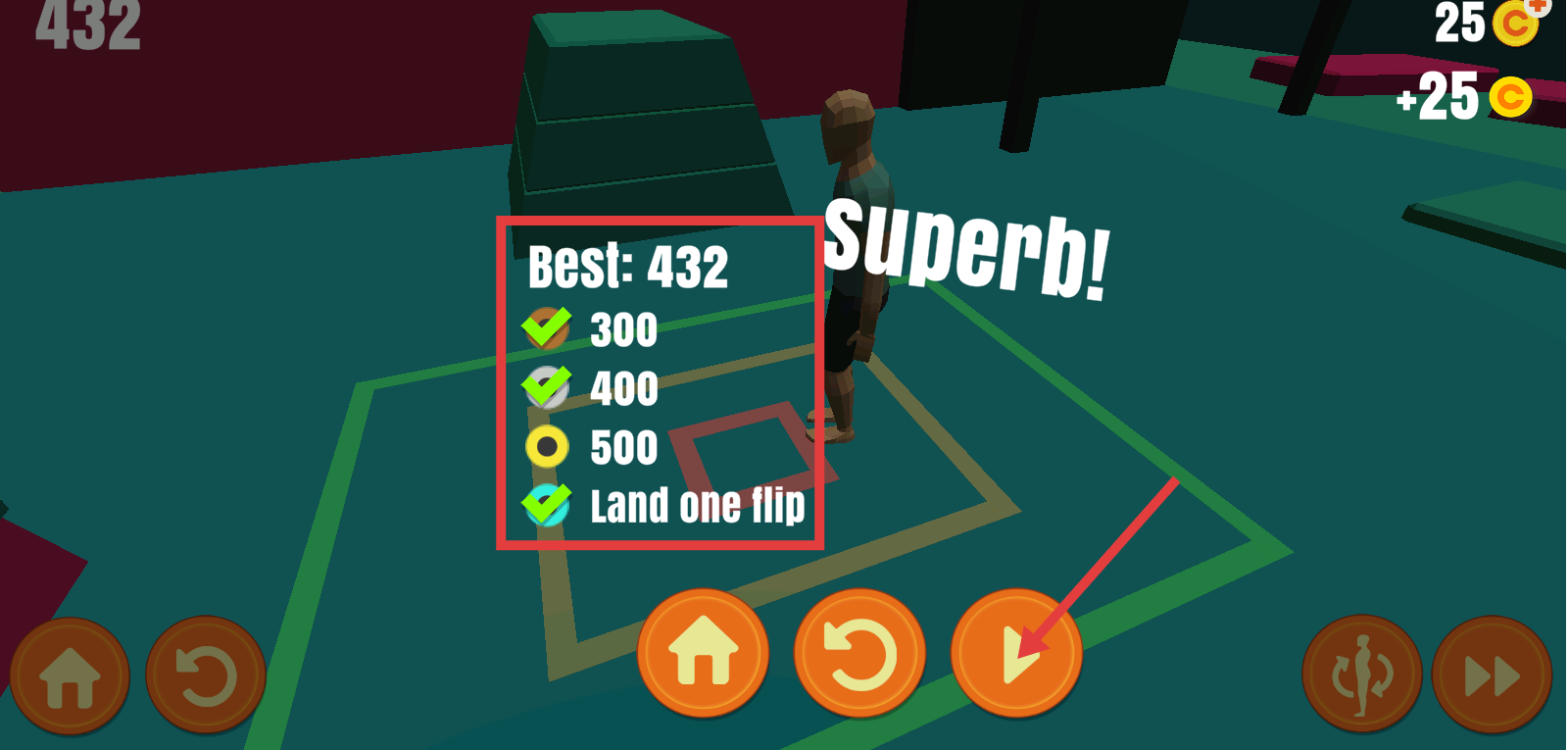 4、完成翻转后,查看【Best-432】等分数和任务完成情况,点击继续按钮挑战更高难度,积累金币与分数。
